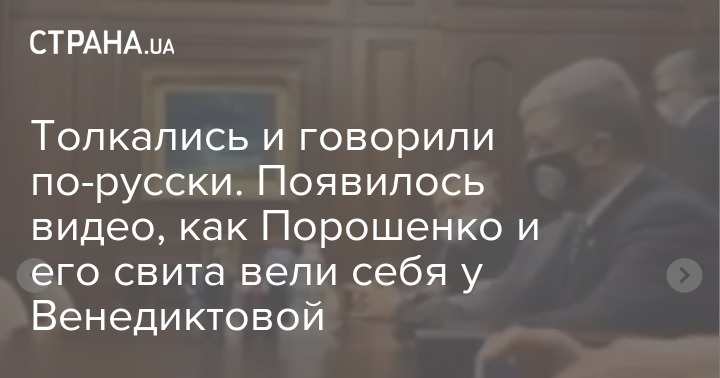 После этого он также вступает в перепалку с Венедиктовой по поводу того, что Офис генпрокурора не является, по его мнению, режимным объектом. Весь разговор экс-президент ведет на повышенных тонах, говорит он на русском языке. В целом на видео заметно, что общаются Порошенко и его сопровождающие с генпрокурором по-хамски.
