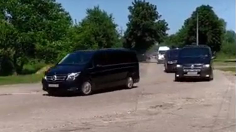 Зеленского в Чернигове сопровождал кортеж, в котором было около 15 автомобилей. Скриншот из видео