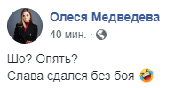"Слава сдался без боя", - пишет журналистка "Страны" Олеся Медведева.