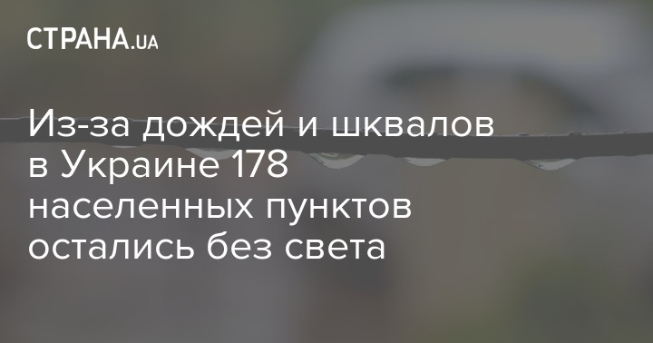 В ночь с воскресенья на понедельник, 15 июня, в Украине из-за сильных дождей и шквальных порывов ветра оказались обесточенными 178 населенных пунктов в девяти областях.
