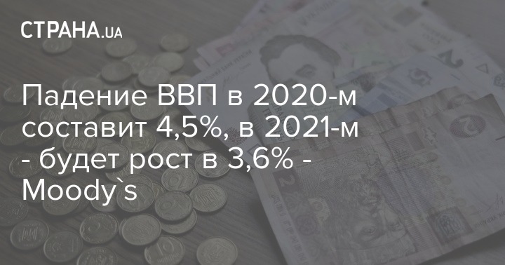 Международное рейтинговое агентство Moody's Investors Service прогнозирует спад валового внутреннего продукта Украины в 2020 году на 4,5% и его восстановление примерно на 3,6% в 2021-м, в то время как Кабмин прогнозировал снижение до 8% в этом году.