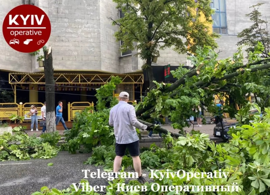 В понедельник, 15 июня, стихия в центре Киева повалила несколько деревьев и повредила припаркованные под ними авто.