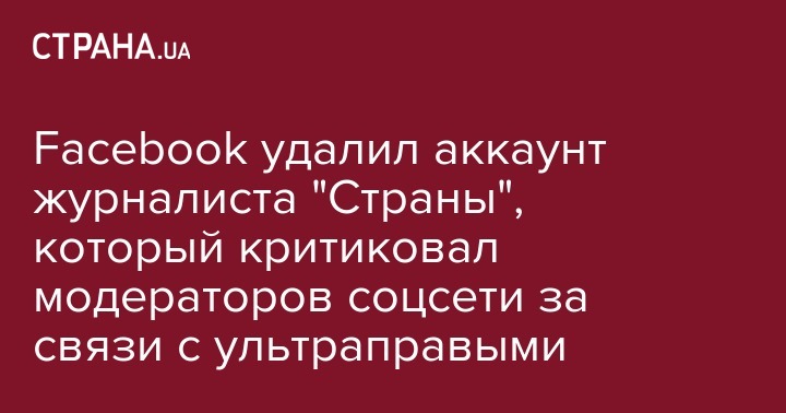 Учетную запись отключили после того, как в "Стране" было опубликовано расследование журналиста "Facebook, Супрун и "Сокира перуна" о связях украинских модераторов Facebook с ультраправыми организациями.