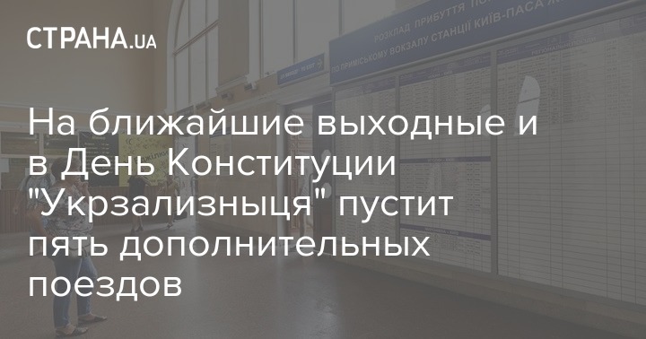 На ближайшие выходные и в День Конституции "Укрзализныця" пустит пять дополнительных поездов