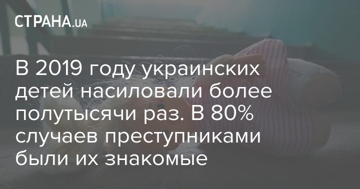 В 2019 году, по данным Офиса генпрокурора, в Украине зафиксировано более 550 уголовных дел по факту преступлений против половой свободы и неприкосновенности детей. В 80% случаев преступниками оказывались знакомые детей. А в 90% случаев о насилии никто не сообщил в правоохранительные органы. Об этом на своей странице в соцсети написал уполномоченный президента Украины по правам детей Николай Кулеба, сославшись на данные исследования предпосылок внедрения новой практики допроса/опроса ребенка, пострадавшего от сексуального насилия.