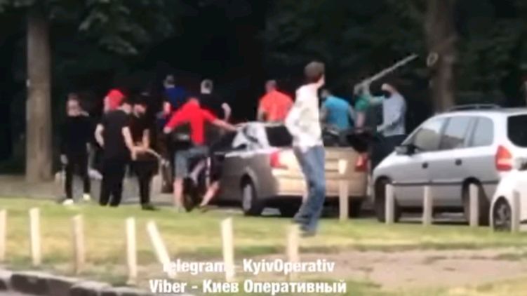 В микрорайоне Воскресенка Днепровского района Киева группа молодых людей примерно из десяти человек напала на автомобиль Chevrolet. Мужчины спортивного телосложения палками били по машине и ногами - по водителю.