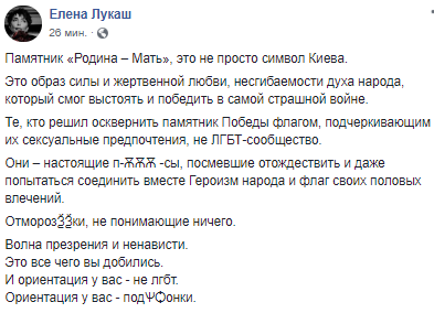 Те, кто решил осквернить памятник Победы флагом, подчеркивающим их сексуальные предпочтения, не ЛГБТ-сообщество.