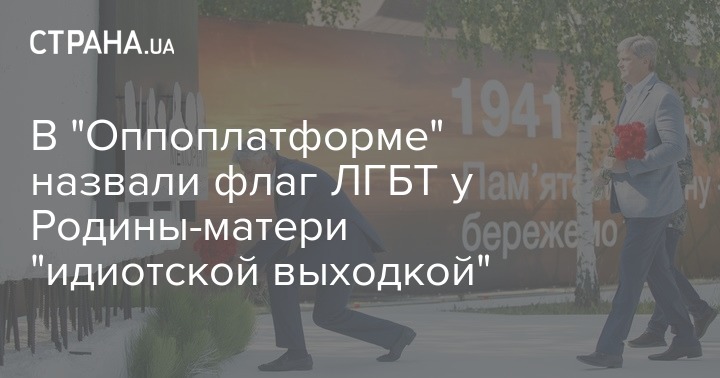 "Оппозиционная платформа - За жизнь" заявила о недопустимости переписывания истории, а также потребовала привлечь к ответственности тех, повесил ЛГБТ-флаг на монумент "Родина-мать" в Киеве накануне 22 июня.