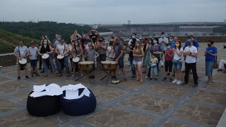 "Это не протесты, потому что на протесты мы уже выходили в феврале. Скорее, это своеобразные брейншторминги - обсуждение, что нам делать дальше. Каждый из филиалов присоединился, как мог. К примеру, Общественное Закарпатья выпустило небольшой фильм, мы же собрались на Хортице, которая для нас знаковая. К тому же, здесь есть свободное пространство, где можно было обеспечить дистанцию между людьми и все соблюдения карантинных условий", - комментирует Ольга Вакало.