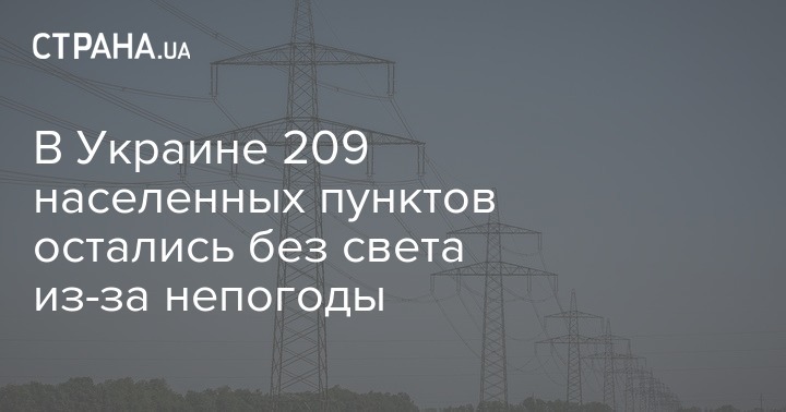 В Украине 209 населенных пунктов остались без света из-за непогоды