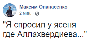 "Я спросил у ясеня где Аллахвердиева...", - пишет Максим Опанасенко.