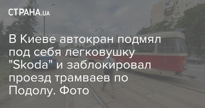 Утром в среду, 24 июня, на улице Кирилловская в Киеве автокран подмял под себя авто марки "Skoda". Авария произошла прямо на трамвайных путях, передвижение общественного транспорта заблокировано.