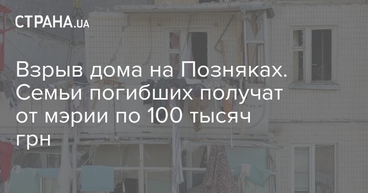 Все семьи, пострадавшие в результате взрыва в многоэтажке на Позняках в Киеве, получат по 50 тысяч гривен компенсации. Те, кто потерял в результате трагедии близких, получат по 100 тысяч гривен за каждого погибшего.