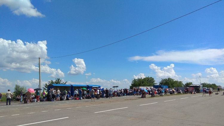 Тем временем очевидцы сообщают, что очередь на блокпосту со стороны Донецка движется очень медленно и многие вынуждены оставаться ночевать и составлять списки очереди.