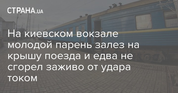 Вчера, 26 июня, в Киеве парень залез на крышу поезда и загорелся после сильного удара током. Пострадавший был госпитализирован, правоохранители устанавливают обстоятельства происшествия.