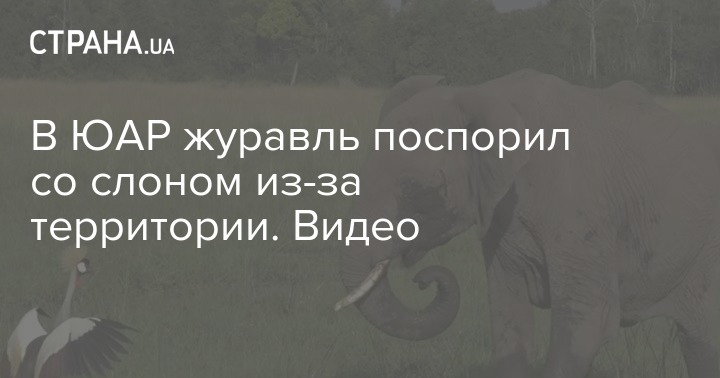 В ЮАР журавль поспорил со слоном из-за территории. Видео