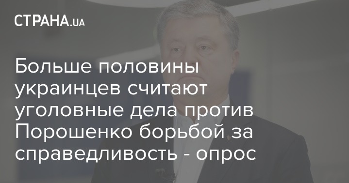 Чуть более половины украинцев (51%) считают, что расследование уголовных дел против экс-президента Петра Порошенко являются наказанием за его преступления и борьбой за справедливость.