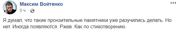 "Я думал, что такие пронзительные памятники уже разучились делать. Но нет. Иногда появляются. Ржев. Как по стихотворению", - пишет одесский журналист Максим Войтенко.