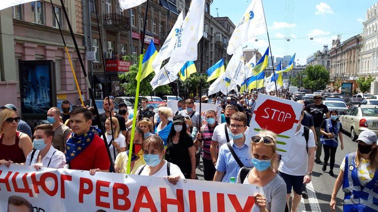 Сторонники Порошенко с экс-президентом идут к Печерскому суду. Фото: "Страна"