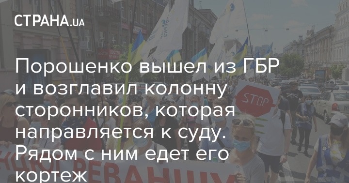 Когда Порошенко вышел из ГБР, он возглавил колонну своих оставшихся у ГБР сторонников, они пошли к суду. Полиция перекрыла движение на бульвар Тараса Шевченко. В начале колонны, параллельно с Порошенко, едет его кортеж.