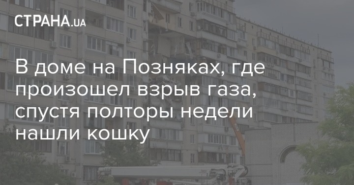 В Киеве в многоэтажке на Позняках, где произошёл взрыв газа, спустя полторы недели нашли кошку. Чтобы поймать домашних питомцев в доме поставили ловушки, и таким образом, животное нашлось.