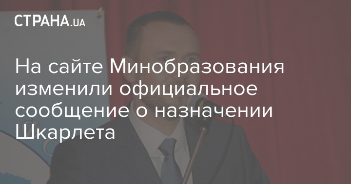 После того, как Сергей Шкарлет был назначен исполняющим обязанности министра образования Украины, новость об этом появилась на официальном сайте министерства. Однако, потом само информационное сообщение подверглось корректировке и исправлениям.