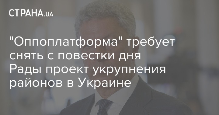 "Оппозиционная платформа - За жизнь" требует снять постановление №3650 о создании и ликвидации районов, которое предусматривает их укрупнение, с повестки дня работы парламента. Представители политсилы заявляют, что решения об учреждении или уничтожении громад должны принимать люди на местах, а не киевские чиновники.