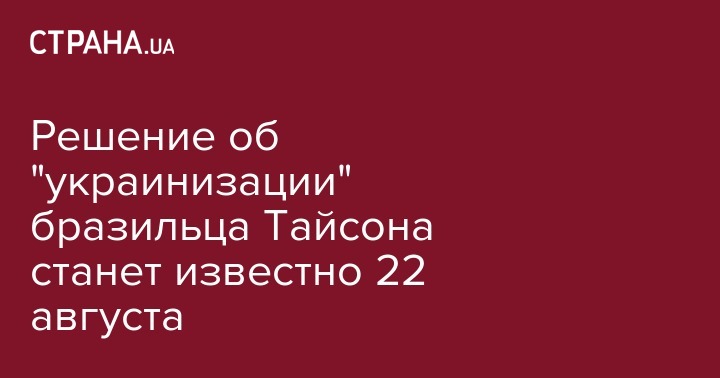 Решение об "украинизации" бразильца Тайсона станет известно 22 августа