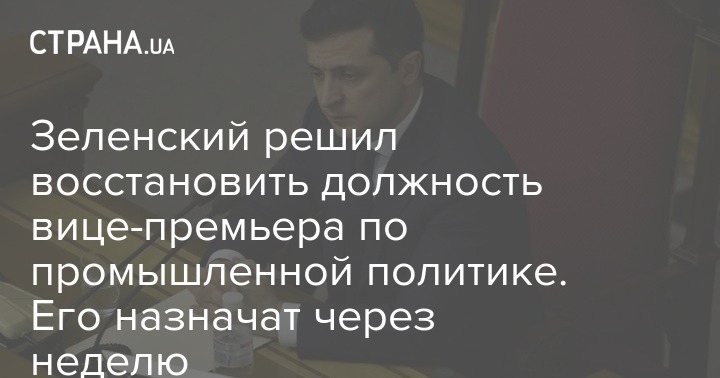 Президент Украины Владимир Зеленский заявил, что власти решили восстановить должность вице-премьер-министра по вопросам промышленной политики. Более назначение на этот пост должен состояться уже через неделю.