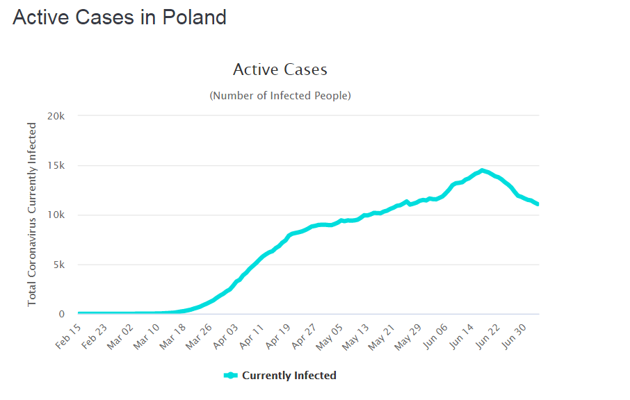 Днем ранее, 4 июля, в Польше зафиксировали 314 новых случая заболевания COVID-19. Пять человек из числа ранее заболевших умерли, 476 выздоровели.