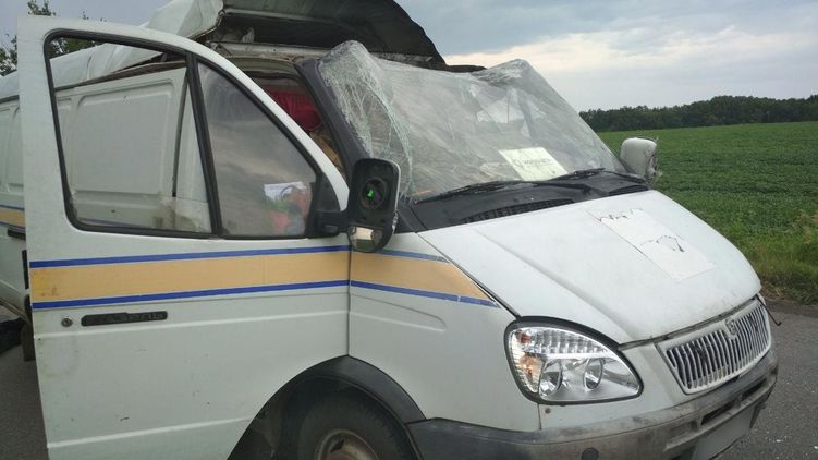 В результате нападения на машину "Укрпошты" пострадали два человека, которые находились внутри авто. Фото: Нацполиция
