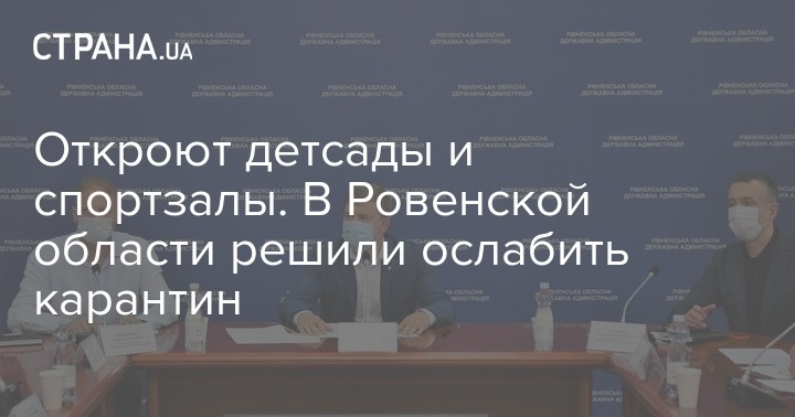 Власти Ровенской области решили ослабить карантин. В частности, разрешат работу спортзалов, детских кружков, фитнес-центров, музеев под открытым небом, а также частично детсадов. Также карантинные меры могут ослабить в Киеве и Львове.