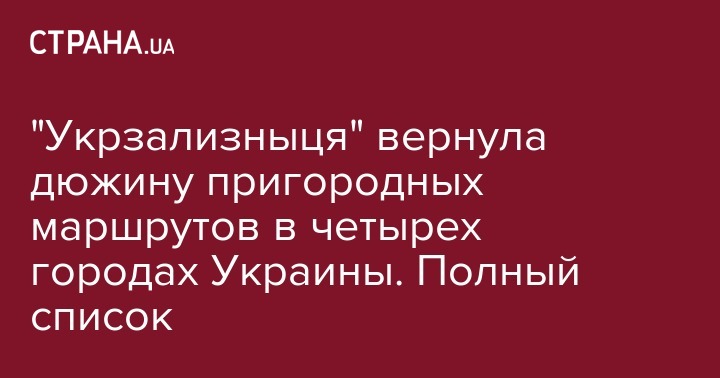 "Укрзализныця" вернула на маршруты еще 12 пригородных поездов, которые возобновят железнодорожное сообщение с небольшими городами вокруг Киева, Днепра, Чернигова и Запорожья.