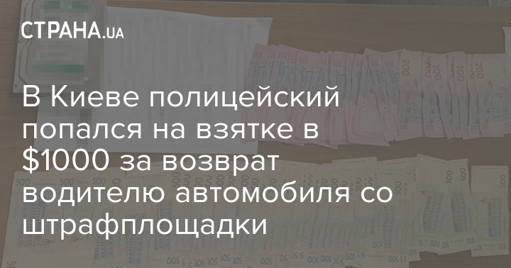 В Киеве полицейский попался на взятке в $1000 за возврат водителю автомобиля со штрафплощадки. Фото: Прокуратура в Фейсбук