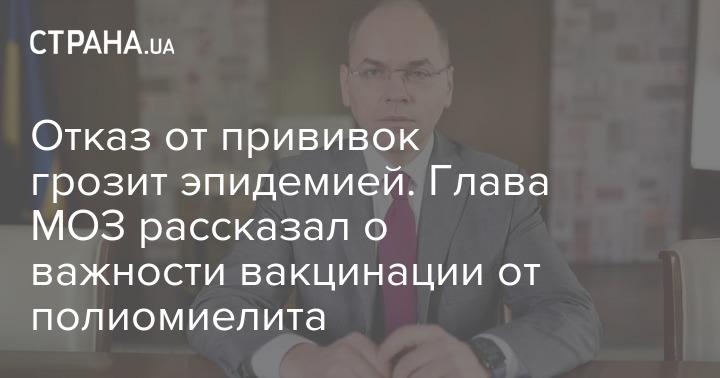 Из-за пандемии коронавируса в Украине наблюдается снижение вакцинации, особенно среди детей. По состоянию на май только 30% детей первого года жизни получили все три дозы вакцины для профилактики полиомиелита. По предварительной информации, уровень иммунизации в июне немного вырос, однако остается недостаточным. Министр призвал родителей проводить обязательную вакцинацию детей от полиомиелита, так как в обратном случае среди маленьких украинцев может начаться смертельная эпидемия. Сейчас больницы страны обеспечены вакцинами в полном объеме.