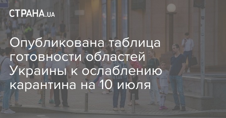 Минздрав опубликовал таблицу готовности областей к смягчению карантина. По состоянию на 10 июля к ослаблению ограничений не готовы семь регионов.