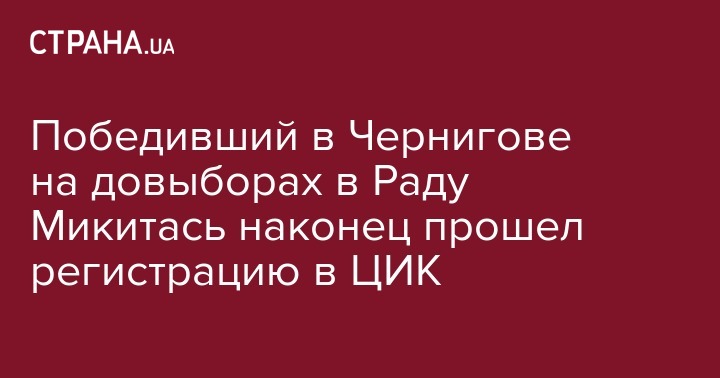 Центральная избирательная комиссия зарегистрировала народного депутата Максима Микитась, который был избран в рамках промежуточных выборов в Раду 17 июля по округу №206. Об этом сообщает УНН.