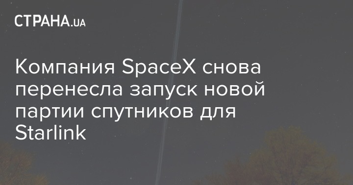 Американская компания Илона Маска SpaceX приняла решение в четвертый раз перенести запуск новой партии из 57 спутников для глобальной сети интернета Starlink.