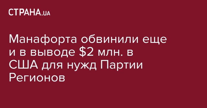 Экс-советник бывшего президента Украины Виктора Януковича, а ныне глава предвыборного штаба кандидата в президенты США Дональда Трампа Пол Манафорт помог Партии Регионов незаконно вывести из страны в США $2,2 млн. Об этом сообщает Associated Press со ссылкой на собственный источник.