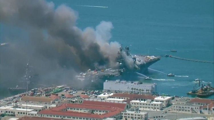 На универсальном десантном корабле ВМС США USS Bonhomme Richard начался пожар и прогремел взрыв. Это произошло, когда судно стояло на военно-морской базе в Сан-Диего.