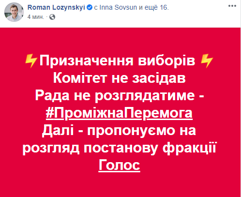 14:42 Депутат "Голоса" Лозинский сообщил, что комитет по местным выборам, как он ранее сообщал, не собирался