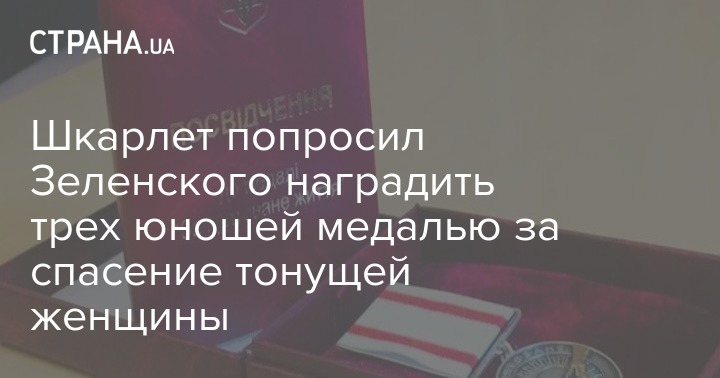 Шкарлет попросил Зеленского наградить трех юношей медалью за спасение тонущей женщины