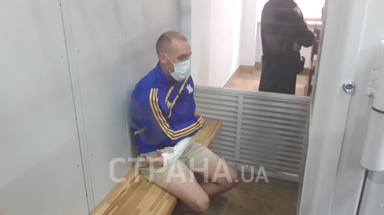 Желепа со сломанной рукой в зале суда. Фото: Страна