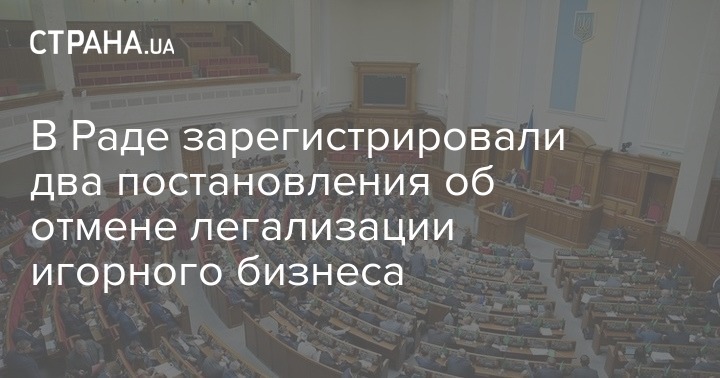 Во вторник, 14 июля, в парламенте зарегистрировали два новых постановления об отмене сегодняшнего решения Верховной Рады (ВР) о принятии закона Украины "О государственном регулировании деятельности по организации и проведению азартных игр".