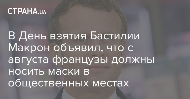 "Я хочу, чтобы за ближайшие недели мы приняли решение об обязательном ношении масок во всех общественных помещениях начиная с 1 августа", - сказал глава государства в интервью телеканалам ТФ-1 и "Франс-2".