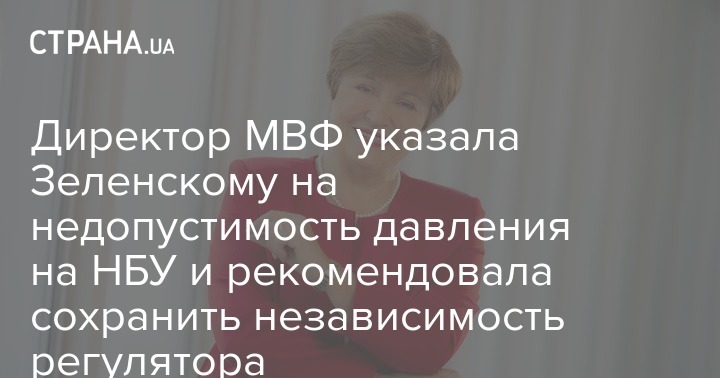 Директор МВФ указала Зеленскому на недопустимость давления на НБУ и рекомендовала сохранить независимость регулятора