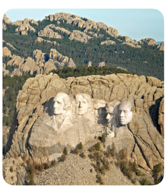 Рэпер Канье Уэст дорисовал себя рядом со скульптурами президентов США на горе Рашмор. Фото