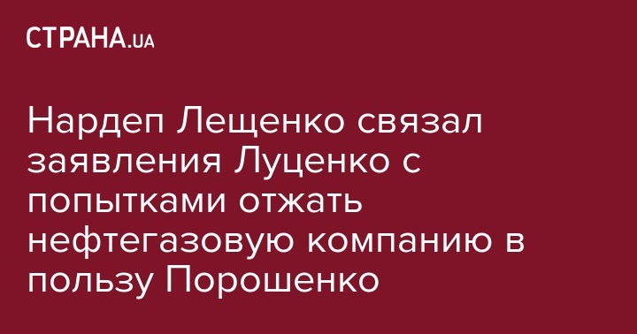 Департамент Кононенко-Грановского ведет дело по частной компании ""Нафтогазвидобування" - компании Рудьковского-Шуфрича-Ахметова. Компании, где когда-то была доля у Порошенко, который пытается вернуть утраченное, используя Суса и ему подобных", - написал Лещенко.