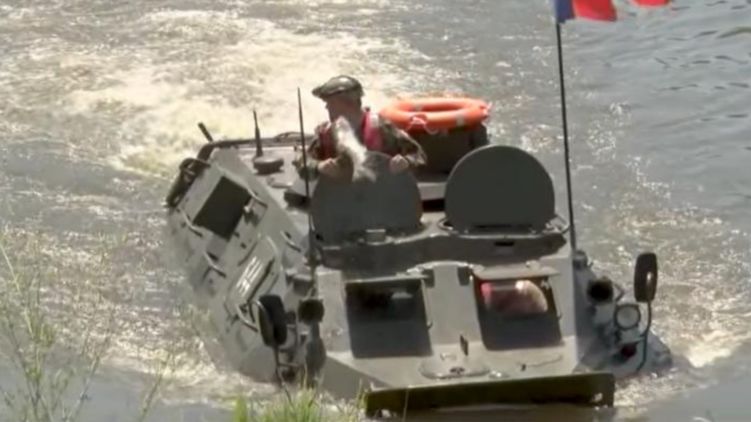 В БТР главы Минобороны Молдовы во время военных учений запрыгнула рыба. Александр Пынзарь, преодолевая водные преграды на бронетранспортере, случайно "поймал лицом" рыбу.