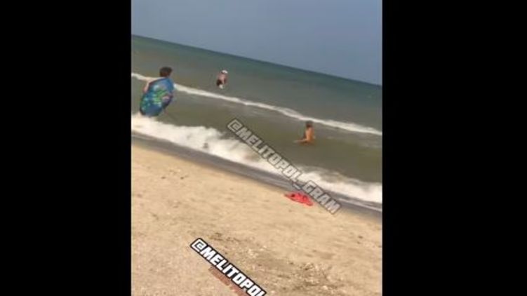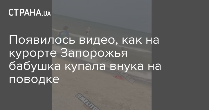 На одном из Запорожских курортов отдыхающие записали видео, как бабушка купает в море своего внука, привязав его к поводку.